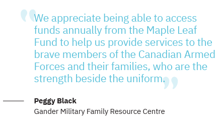 The Maple Leaf Fund was born from the success of the 2013 Atlantic Maple Leaf Tribute Dinner held in St. John’s. The event, which raised over $800,000 and was led by Mahoney, Miller Ayre and other dedicated community leaders, did more than gather funds; it was a significant step in fostering mutual understanding and respect. “It was about connecting the community with our military members and their families,” reflects Mahoney. 2023 Annual Report Community Foundation of Newfoundland and Labrador.